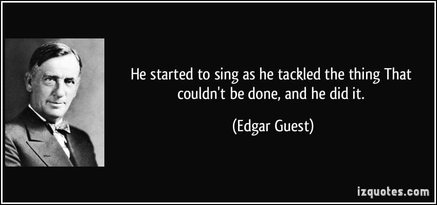 It Couldn T Be Done By Edgar Albert Guest - It Couldn't Be Done - Edgar Guest poem set to music - YouTube - Negativity kicks in for most people and the pessimist in us said, it couldn't be done. really?